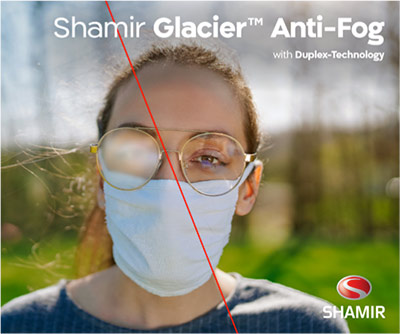 While Glacier Anti-Fog was initially developed for athletes, because of COVID-19 Shamir recognized the urgent need for healthcare workers, who wear masks for long periods during which they are unable to touch their glasses, to have eyeglass lenses that don’t fog. (Fig 2) In addition to healthcare, workers in every sector such as grocery stores, restaurants, hair salons, ride-shares and other businesses can benefit from lenses that don’t fog. In fact, masks are becoming mainstream attire for nearly everyone and consumers want the relief of eyeglass lenses that don’t fog. Glacier Anti-Fog with Duplex Technology does just that and more. Offer your patients the relief they want with more information at whenvisionmatters.com.