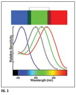 Most performance sunglass manufacturers offer color-enhancing lenses that filter the visual noise of overlapping wavelengths (Fig. 3) in the visible spectrum to produce saturated colors that make individual colors POP. Athletes love these lenses, which can be tuned to make the colors most prevalent in their sports environment vivid.